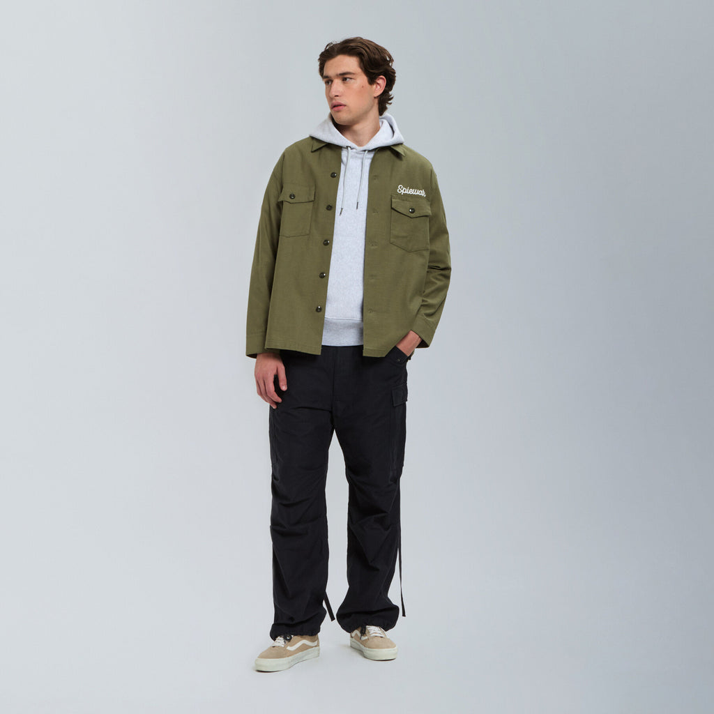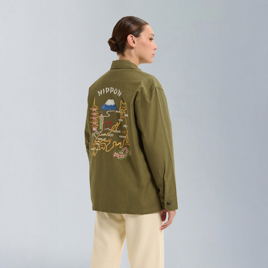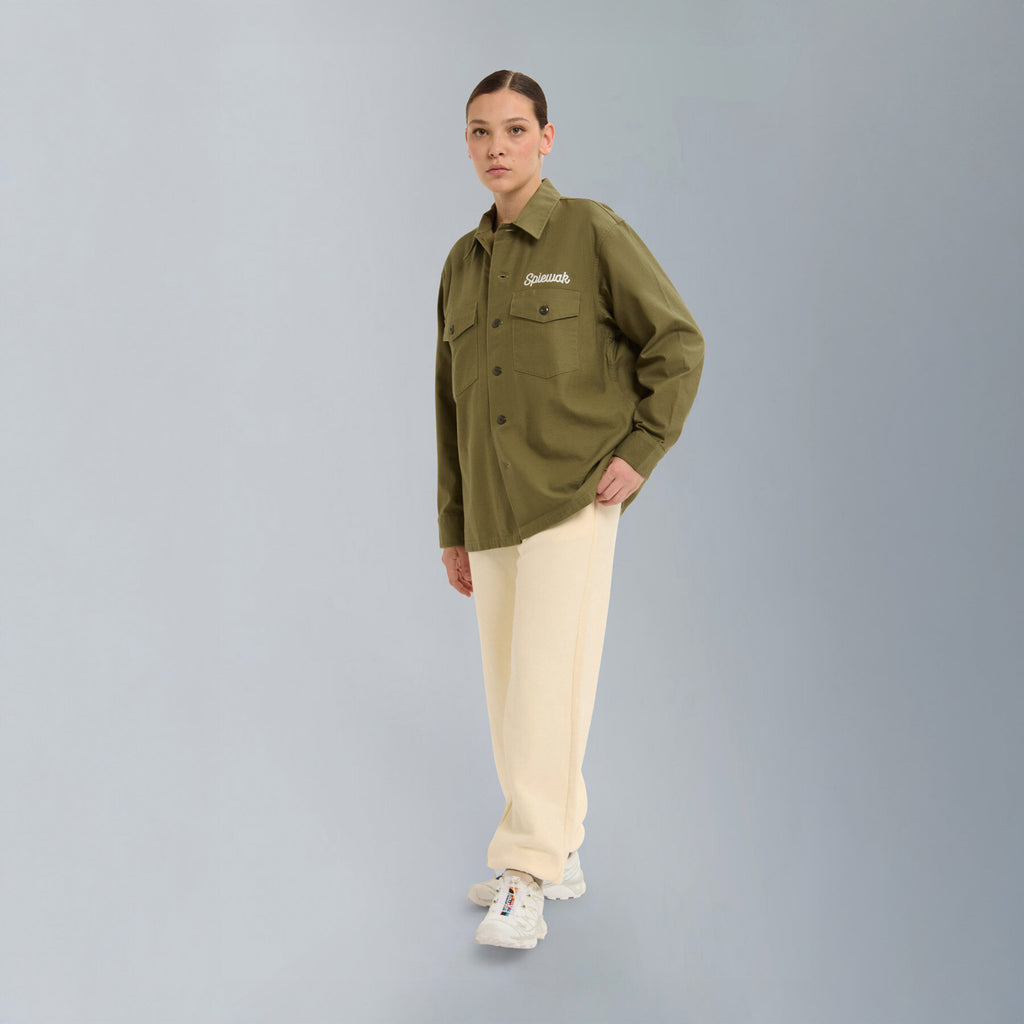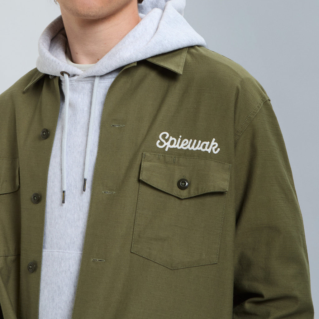 Inspired by the classic 1960s U.S. Army utility shirt, this piece is reimagined with a relaxed, oversized silhouette for a modern fit. Detailed embroidery and vintage-style accents add character, giving the shirt an authentic military feel with a contemporary twist.