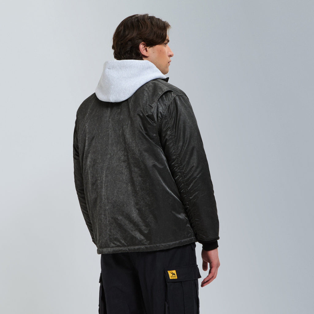 This modern version is crafted from a durable, thick nylon twill, specially treated with an aged finish to give it a unique, vintage character. This jacket combines authentic naval heritage with a rugged, worn-in aesthetic, making it a standout piece for any wardrobe.