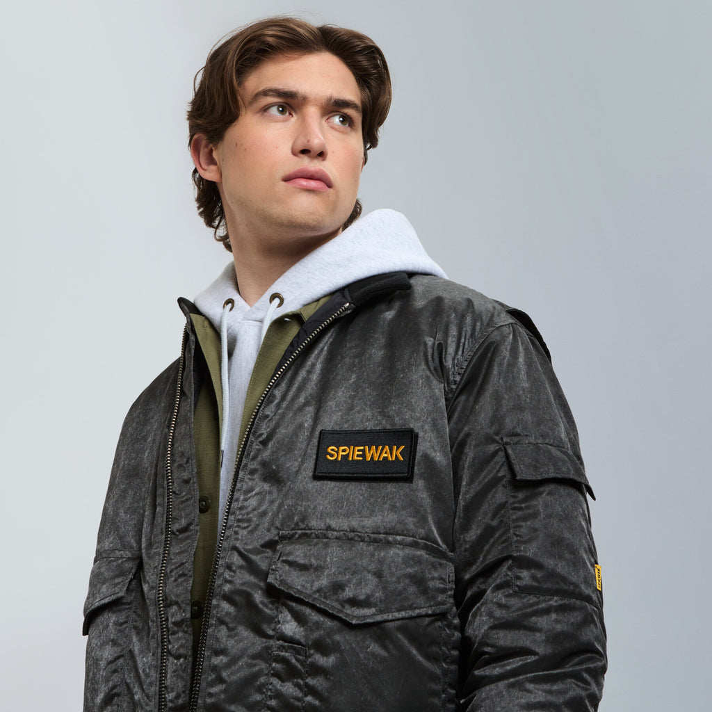 - A yellow removable "SPIEWAK" logo patch on the right chest