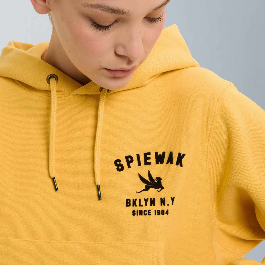 Part of the vintage-inspired sweatshirt series, the Hoodie Pullparka is crafted from classic fleece fabric featuring open-end yarn on the outer layer. This construction gives the piece its signature structured feel and dry touch, echoing the look and texture of true vintage sportswear.